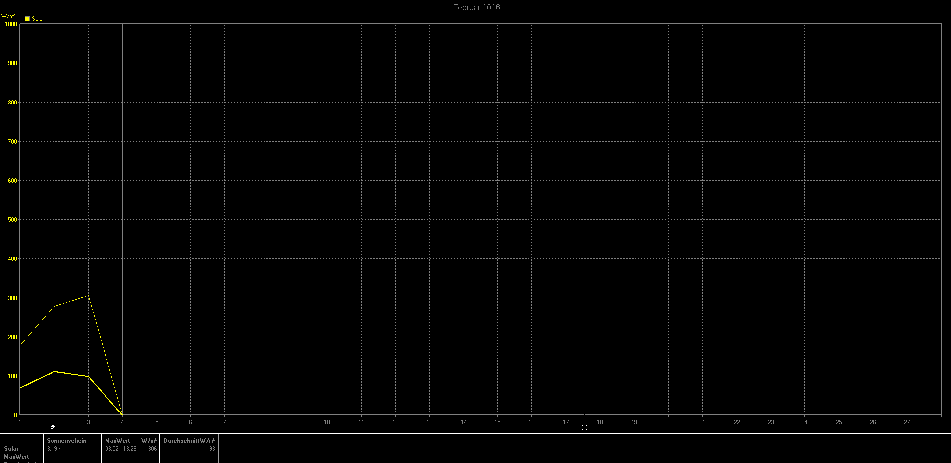 | Tageslänge: 09:11h · Elevation aktuell: -35,502° · Azimut aktuell: 292,645° | Neumond: 13:02 17. Februar 2026 · Vollmond: 12:39 3. März 2026 |